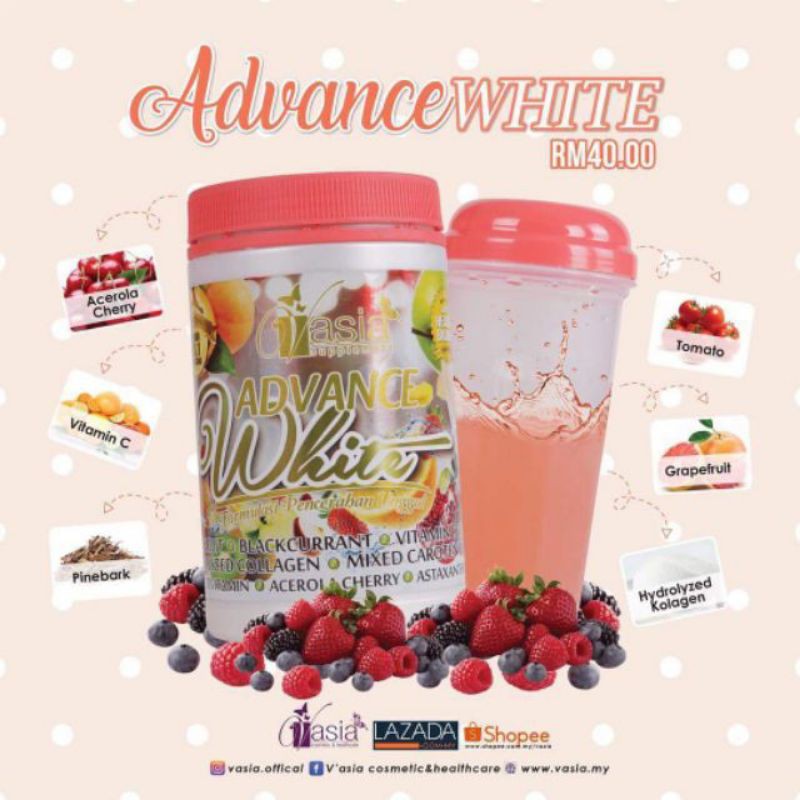 Dapatkan Advance White dari V Asia minuman pencerahan berkolagen 1 pilihan pengguna. Advance White VAsia ialah satu produk mampu melindungi kulit anda daripada. By buying this product you can collect up to 3 points.